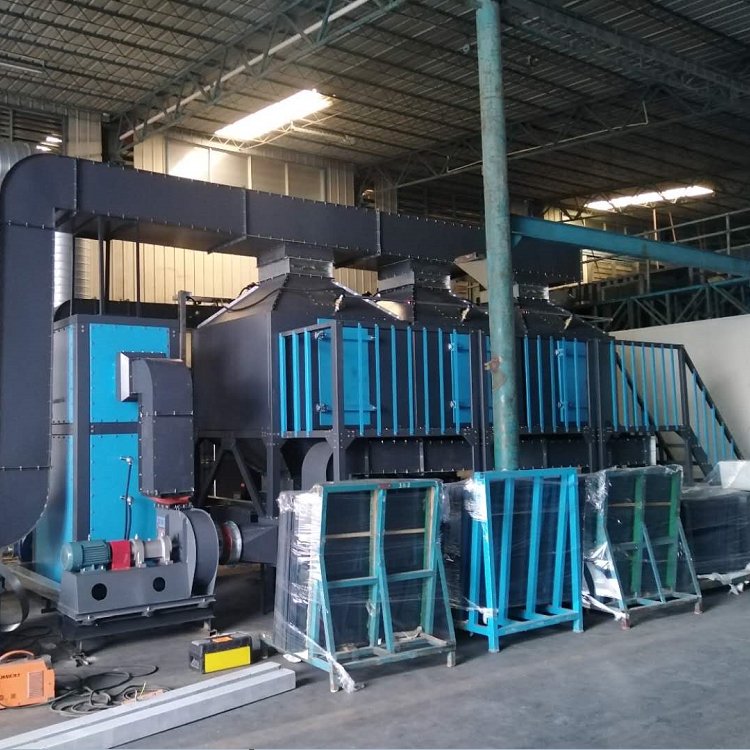1、干式過濾器:待處理的有機廢氣由風管引出后進入干式過濾器,可過濾廢氣中的顆粒物及粘性成分,延長活性炭的吸附周期及使用壽命;