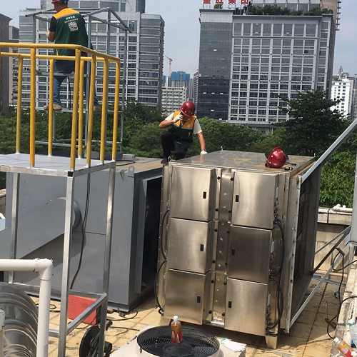 安裝等離子廢氣凈化設備,分為高空和低空,可根據(jù)現(xiàn)場情況設定安裝的位置。