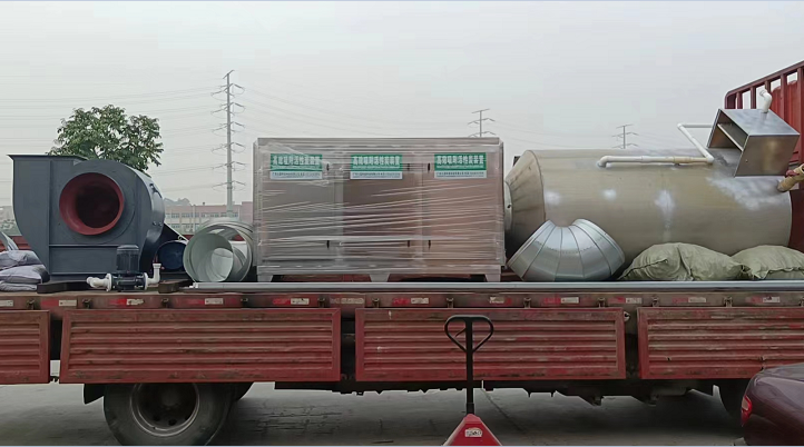 廣東久藍環保于2022年4月21日早上發貨voc廢氣治理設備,該套設備包括:PP噴淋塔,使用PP材質制作,處理25000風量,電機功率2.4KW;活性炭吸附箱25000風量,制作材質不銹鋼201,三門六抽屜,活性炭吸附箱尺寸為:1.8mm*530mm*900mm,采用蜂窩式活性炭,800碘值,離心風機加風管,該套voc廢氣治理設備用于廢氣處理工程,印刷廠的酸性廢氣處理,廣東久藍環保科技有限公司是一家生產voc廢氣治理設備,承接廢氣處理工程的環保公司,歡迎咨詢了解。